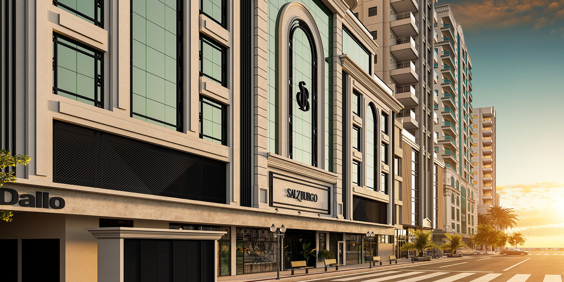 POR TRÁS DA ARQUITETURA - Inspirado no estilo austríaco do período clássico, o Salzburgo, com seu exterior refinado, desperta encanto e sofisticação. Os arquitetos responsáveis pelo projeto, concentraram suas amplas experiências trabalhando com edifícios icônicos, para projetar uma elegante fachada que é impressionante e perfeitamente contextual ao seu estilo.